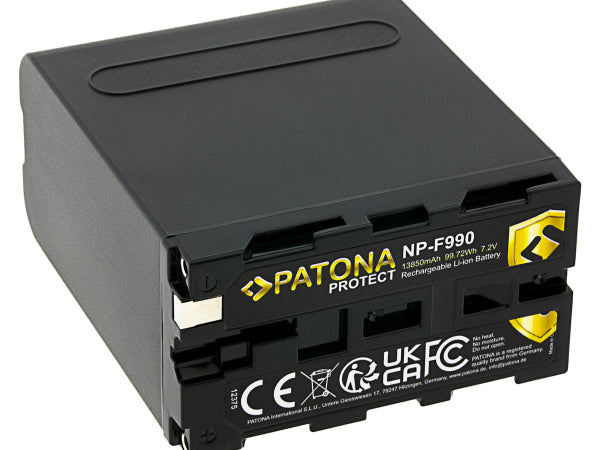 Technische Daten: Typ: NP-F990 Kapazität: 13.850mAh / 99,72Wh Spannung: 7,2 Volt Zellentyp: Li-Ion Marke: PATONA PROTECT Ersetzt folgende Originalakkus: NP-530, NP-730, NP-930, NP-F330, NP-F730, NP-F550, NP-F750, NP-F930, NP-F950, NP-F960, NP-F970, NP-F990 Neu und exklusiv bei PATONA sind unsere Akkus der PROTECT-Serie. Diese zeichnen sich durch ein Gehäuse aus, welches feuerhemmend und extrem hitzeresistent ist. Es wurde speziell für den extremen Dauereinsatz entwickelt. Ferner sind wie beim Originalakku NTC Widerstände (negativer Temperaturkoeffizient) auf der Akkuleiterplatte angebracht, die die Temperatursteuerung kontrollieren und bei Überhitzung automatisch abschalten.