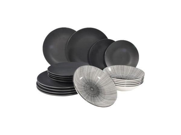 Tavola Geschirrset 18-teilig Nagano matt schwarz/weiss