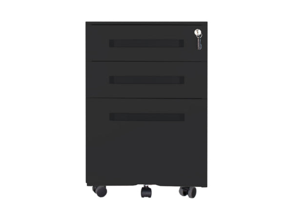 Der CONTINI Rollkorpus in elegantem Schwarz ist die perfekte Lösung für dein Büro oder Home-Office. Ausgestattet mit drei geräumigen Schubladen, bietet dieser Rollcontainer viel Stauraum und sorgt für Ordnung und Übersicht., , Dieser Rollkorpus verfügt über vier leichtgängige Räder, die dir maximale Flexibilität und Mobilität ermöglichen. Die Schubladen sind abschliessbar, sodass deine Dokumente und persönlichen Gegenstände sicher aufbewahrt werden können., , Die unterste Schublade ist speziell für Hängeregister ausgelegt, um eine einfache und geordnete Ablage deiner Unterlagen zu gewährleisten. Bitte beachte, dass die Hängeregister nicht im Lieferumfang enthalten sind., , Produktinformation, 3 Schubladen, Korpus mit 4 Rädern, Schubladen abschliessbar, Unterste Schublade für Hängeregister, Hängeregister nicht inklusive, , Innenmasse Schubladen:, Schublade 1 (H x B x T): 70 x 325 x 370 mm, Schubalde 2 (H x B x T): 70 x 325 x 370 mm, Schublade 3 (H x B x T): 245 x 325 x 370 mm