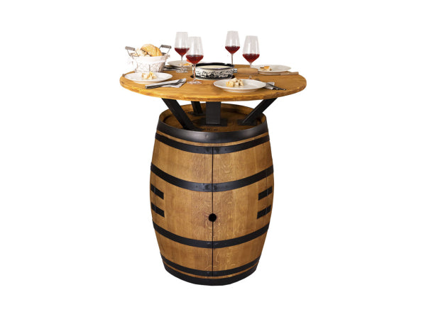 Der exquisite Bodega Stehtisch, gefertigt aus einem originalen Weinfass und ausgestattet mit einem stilvollen Fondue Rechaud. Dieses Meisterwerk ist nicht nur eine Augenweide, sondern auch ein Gaumenschmaus. Das Set beinhaltet ein hochwertiges schweizerisches Fondue-Set und eignet sich perfekt für gesellige Fondueabende im Freien oder im Innenbereich, zusammen mit deiner Familie und Freunden., , Jedes einzelne Barfass wurde sorgfältig und detailverliebt in Handarbeit in der Schweiz gefertigt. Dadurch wird jedes Fass zu einem einzigartigen Unikat, das eine ganz persönliche Note trägt. Die Liebe zum Detail und die Handwerkskunst, die in jedes Fass einfliessen, machen dieses Produkt zu einem unvergleichlichen Schmuckstück für dein Zuhause., , Produktinformation, Handgefertigt in der Schweiz, Eichenholz geschliffen und mit Naturöl behandelt, Metallreifen schwarz-matt lackiert, Ideal für Fondueabende draussen, Mit Tischplatte, , Masse, Gesamthöhe 1100 cm , Tischplatte Ø 100 mm, Öffnung Ø 24 cm