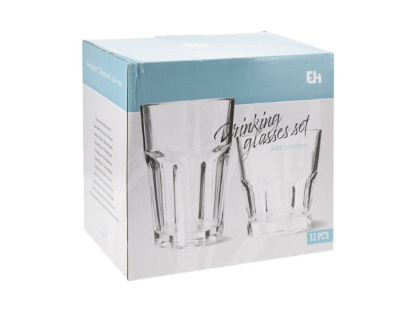 Diese hochwertigen Gläser sind nicht nur elegant, sondern auch äusserst funktional. Jedes Glas verfügt über einen stossfesten Boden, der sie langlebig und robust macht. Die Spülmaschinenfestigkeit ermöglicht eine mühelose Reinigung nach dem Gebrauch. Mit einer Auswahl von 6 kleinen und 6 grossen Gläsern bist du für jede Gelegenheit perfekt ausgestattet. Egal, ob du Wasser, Saft oder Cocktails servierst, dieses Set erfüllt deine Bedürfnisse und verleiht Ihrem Tisch eine stilvolle Note. , , Produktinformation, 6 Stück kleine Gläse à 250 ml, 6 Stück grosse Gläse à 360 ml, Verstärkter stossfester Boden Haltbarkeit und Langlebigkeit, Spülmaschinenfest