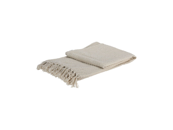 Produktinformation, Baumwolldecke mit Fransen, Perfektes Accessoire für Bett oder Sofa, Weich und kuschelig, Schönes Design in Beige, Verleiht Stil und Eleganz