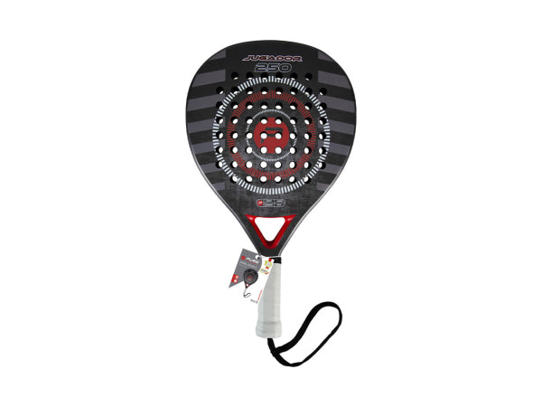 Das Jugador 250 Paddel von Pure2Improve ist die ideale Wahl für Padel-Einsteiger und Freizeitspieler, die mehr Kraft in ihren Schlägen suchen. Mit seinem grosszügigen tropfenförmigen Schlachtfeld ermöglicht dieser Schläger kraftvolle Schläge, die das Spiel auf das nächste Level heben., , Die besondere Form des Jugador 250 Paddels verleiht die zusätzliche Power, die benötigt werden, um Bälle mit Schwung und Präzision über das Feld zu treiben., , Die leichte Konstruktion aus Glas- und Kohlefaser gewährleistet nicht nur eine lange Lebensdauer, sondern vermittelt auch ein beeindruckendes Schlaggefühl. Der Griff des Schlägers ist robust und komfortabel, und die integrierte Handschlaufe ermöglicht ein sicheres Handling und einfaches Tragen., , , Produktinformation, , Mit Carborahmen, Glasfaserkern und Carbonaussenschicht, Tropfenform mit niedrigem Schwerpunkt, Für eine gute Kontrolle und Power, EVA-Dichte von 22