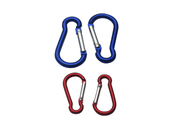 Produktinformation, , Aus Aluminium, 2-farbig, Öffner federbelastet, Nicht zum Klettern geeignet, 2 Stück je 29 mm x 61 mm (rot), 2 Stück je 38 mm x 79 mm (blau)