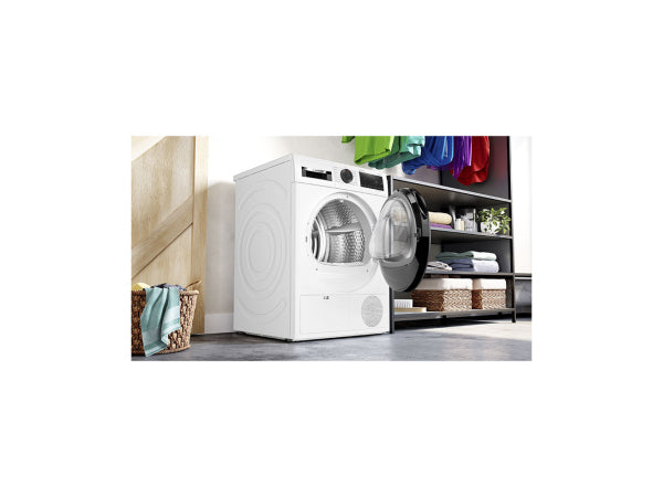 Der Bosch WQG2410JCH Wärmepumpentrockner revolutioniert die Wäschepflege. Mit seiner innovativen Wärmepumpentechnologie trocknet er effizient und schonend, während er Energie spart., , Produktinformation, Programme, Standardprogramme: Baumwolle, Pflegeleicht., Spezialprogramme: Baumwolle, Hemden, Baumwolle Eco, Daunen,, Fein, Handtücher, Mix, Extra Kurz 40', Sport, Decken, Pflegeleicht,, Wolle finish, Zeitprogramm kalt, Zeitprogramm warm, , Optionen, Knitterschutz 120 min am Programmende, Option "Halbe Last": optimiert die Trocknung für kleinere Lasten, TouchControl-Tasten: Bügeltrocken, Schranktrocken,, Schranktrocken+, Endzeitvorwahl, Bügelleicht, Schon, Signal, Start, / Nachlegen / Pause, 24 h Endzeitvorwahl, , Komfort und Sicherheit, Economy-Green, AutoDry Technologie: feuchtegesteuerte Trocknungsprogramme, Grosses, übersichtliches LED-Display, Beladungsempfehlung, Nutzungszähler: Zählt abgeschlossene Programme, Drehwähler, Sensitive Drying System: grosse Edelstahltrommel, Mitnehmer im, Softdesign, AntiVibration Design: mehr Stabilität und Laufruhe, Kondensat-Ablaufgarnitur, Kindersicherung, Signal am Programmende, Schwenktür, Türanschlag rechts, Metallverschlusshaken