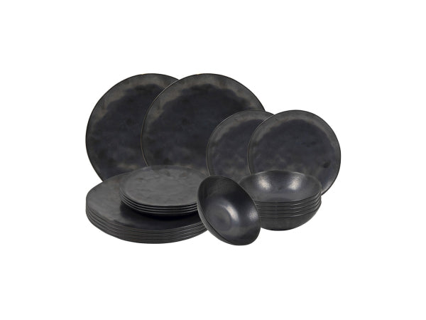 Das 18-teilige Geschirrset ist perfekt für jeden Anlass und lässt deine Tafel immer stilvoll aussehen. Das Set besteht aus sechs grossen Tellern, sechs kleinen Tellern und sechs Schüsseln, die alle aus hochwertigem Steingut gefertigt sind. , Das Design des Geschirrs ist modern und elegant, mit der Imitation von gehämmertem Blech sorgt das Set für eine angenehme Haptik und verleiht jedem Gericht eine ansprechende Präsentation. , Das Geschirrset ist leicht zu reinigen und langlebig genug für den regelmässigen Einsatz. Das Set ist perfekt für Familienessen, Dinnerpartys oder für den täglichen Gebrauch. , , Produktinformation, Material: Steingut, Modernes Highlight, Zeitloses Design, Spülmaschinenfest, , Inhalt:, 6x Frühstücks- und Essteller ⌀20cm , 6x Suppenschüsseln ⌀17.5cm, 6x Essteller ⌀27cm