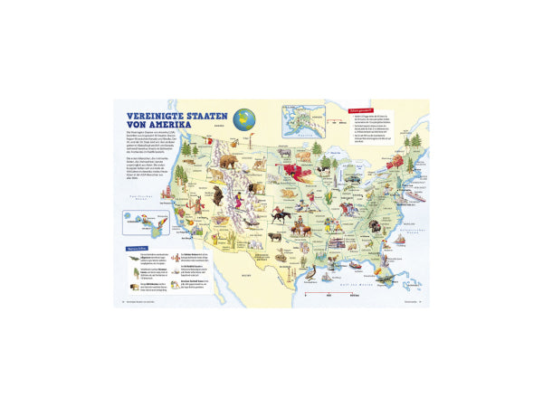 Produktinformation, Detailreiche und farbenfrohe Karten, Kindgerechte, länderspezifische Informationen, Mit grossem, farbigem Weltkarten-Poster, Mit Liebe zum Detail illustriert, Ideal zum Lernen, ISBN: 978-3-89736-717-3