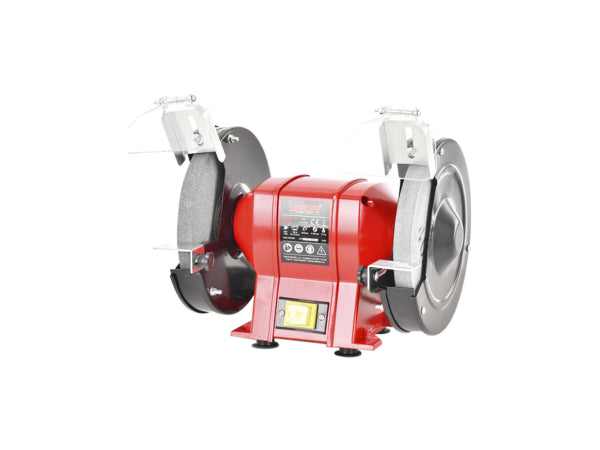 Produktinformation:, 350 Watt Elektromotor, Langlebiges Metallgehäuse, 2 Schleifsteine zum Grob- und Feinschleifen K60 und K36, Einstellbarer Funkenschutzgläser, Individuell verstellbare Werkstückauflagen , Gummifüsse dämpfen Vibration und sorgen für sicheren Halt, Auf der Seite geschlossene Schutzhauben, Lange Lebensdauer dank Staubschutzschalter, Divers einsetzbar, , Inhalt:, Zwei Schleifsteine mit Ø 200 mm , Eine Grobschleifscheibe mit Körnung 36, Eine Feinschleifscheibe mit Körnung 60