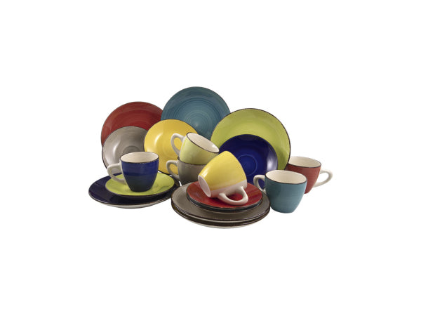 Produktinformation, Kaffeeservice 18-teilig für 6 Personen, Hochwertiges Design für den Alltag, Bringt Farbe und Abwechslung auf den Tisch, Schöne Struktur und Lasierung, , , Inhalt , 6 x Kaffeetasse 175 ml, 6 x Untertasse Ø 14.5 cm, 6 x Kuchenteller Ø 19 cm