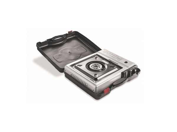 Produktinformation, Mobiler Gaskocher, Integrierte Piezozündung , Mit Schutzhülle, Mit Fach für Gaskartusche, Mit Überhitzungsschutz, Ideal zum Kochen beim Campen in der Natur