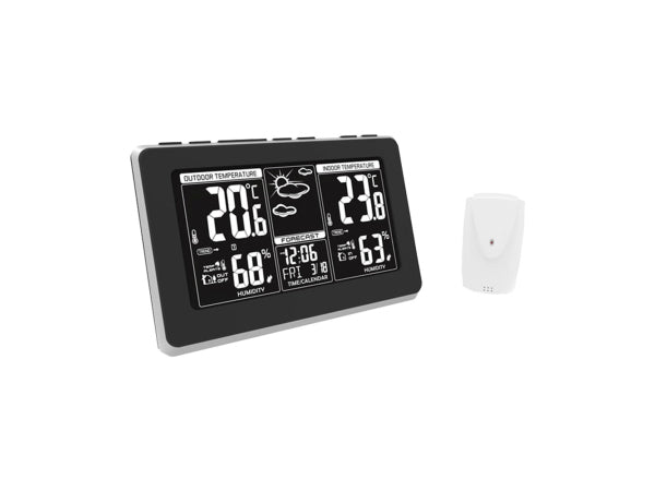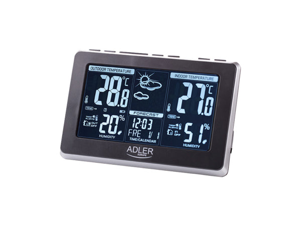 Die Wetterstation von Adler passt dank seinem modernen Design in jede Wohnung. Sie zeigt verschiedenste Informationen wie Aussen- und Innentemperatur, Luftfeuchtigkeit, Datum, Uhrzeit etc. auf einer weissen Digitalanzeige an. , , Auch kann man verschiedenste Alarme bei besonders hohen oder tiefen Temperaturen einstellen. Auch kann die Station als Wecker verwendet werden.