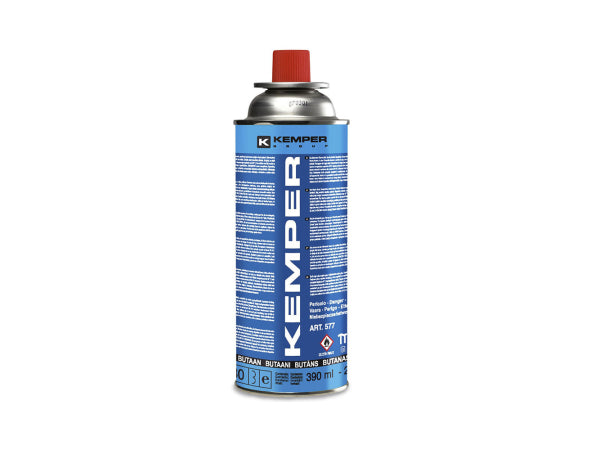Produktinformation:, Nutzung in 180° Position möglich, Universal Butangas Kartusche mit Ventilvorsatz, Inhalt 220g Netto / 393ml, Für eine vielseitige Verwendungsmöglichkeiten, In Verwendung mit KEMPER Camping Gaskocher