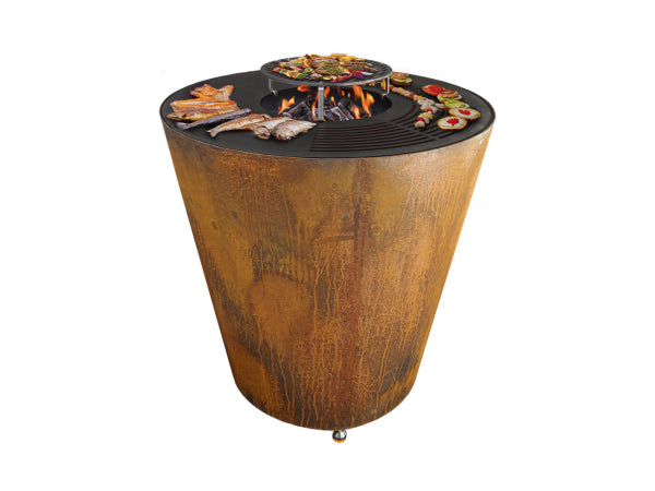 Diese imposante Feuerschale ist die ultimative Ergänzung für einen einladenden, heimeligen und grossen Garten. Durch die einzigartige Höhe kann angenehm auf Arbeitshöhe gegrillt werden. Zudem können die Einzelteile so entnommen werden, dass sie auch einfach als dekorative Feuerstelle verwendet werden kann., , Ausserdem ist die Schale mit Zubehör zum Platzieren der Schale ausgestattet (siehe letztes Bild). So könnte die Schale mit Hilfe eines Krans oder viel Muskelkraft an einem geeigneten Standort platziert werden. Geeignet dafür wären robuste Untergründe wie Kies, Stein und Beton. Die Schale sollte weder direkt auf den Rasen noch auf Holz oder Vinylunterlagen gestellt werden., , , Pflegehinweis, Es ist zu empfehlen, den Grillring vor der Erstverwendung ordentlich einzubrennen. Dies dient zur Langlebigkeit des Grillrings als Korrosionsschutz. Zusätzlich wird empfohlen, ihn hin und wieder mit Öl einzufetten., , , Produktinformation, , Aus robusten Materialien, Nur für den Aussenbereich geeignet, Kochfläche aus Karbonstahl, Schalenkörper aus rostendem Stahl, , , Geeignete Untergründe:, , Kies, Stein, Beton, , , Ungeeignete Untergründe:, , Rasen, Holzboden, Vinylunterlagen, , , Masse:, , Gesamthöhe 110 cm, Höhe ohne Rost klein 85 cm, Durchmesser Schale oben 100 cm, Durchmesser Schale unten 60 cm, Loch Mitte 40 cm