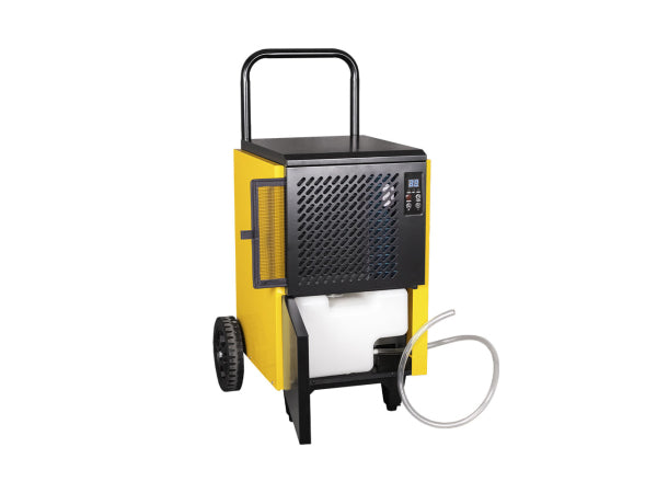 Der Bauentfeuchter B50 von Kibernetik ist ein leistungsstarker Entfeuchter für Räume bis zu 50 m2. An der Front befindet sich ein Display, über welches das Gerät gesteuert werden kann. Zudem wird angezeigt, wenn der Wassertank voll ist. , , Der Bauentfeuchter von Kibernetik wird freistehend in feuchten Räumen aufgestellt und kann somit flexibel von Raum zu Raum transportiert werden. Dank des Stahlgriffes kann dies ohne grosse Krafteinwirkung und rückenschonend bewältigt werden. , , Der Wassertank kann auf zwei verschieden Arten verwendet werden. - Direkte Nutzung: Sobald der Wassertank voll ist, schaltet sich das Gerät automatisch ab und geht in den Standby-Modus, die LED «FULL» ist aktiv und ein Alarm wird aktiviert, Kontinuierliche Entleerung: Demontieren Sie Wasserablauf-Anschlussstück und bohren Sie ein Loch in den Wasserablauf., , , Produktinformation, Stromanschluss AC 220-240V/50Hz, Max. Entfeuchtungsleistung 50L/D(30℃ RH80%) / 30L/D(27℃ RH60%), Max. Ansaugdruck 1.0Mpa , Max. Entladedruck 2.5Mpa, Kältemittel R290/200g, Inkl. Stahlgriff und Fusspedal , 2 Räder, Digitales Bedienfeld