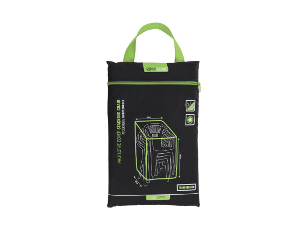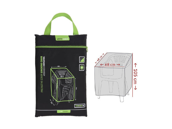 Produktinformation:, Verpackt in Tragetasche mit Reisverschluss, Abdeckung für stapelbare Gartenstühle, Wasserabweisend, UV-beständig, Schwarz