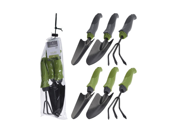 Mit dem FS STAR Gartenwerkzeug Set bist du mit einer kleinen Schaufel, einer grossen Schaufel und einer Kralle mit drei Hacken ausgerüstet