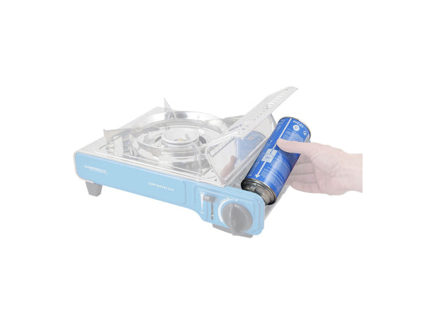Produktinformation, Ventilkartusche mit Isobutangas, Für CAMPINGAZ-Geräte der Linie BISTRO und FESTIVIO, Sicherheitsventil für einfachen und sicheren Anschluss, Niedrigste Einsatztemperatur: 5 °C