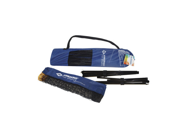 Produktinformation, , Schneller und unkomplizierter Aufbau ohne Werkzeug, Vielseitig einsetzbare Freizeit-Netzgarnitur für Badminton, Volleyball, etc., Keine Verankerung im Boden und umständliches Abspannen erforderlich, Freistehendes Netz, daher auch ideal für den Indoor Gebrauch, Material Netz: Polyester, Durchmesser Stahlrohrgestell: 18 mm, Einsetzbar im Garten, auf der Wiese, im Freibad oder auf dem Parkplatz, Verpackt in robuster Tragetasche mit Tragegurt, Masse aufgebaut: Breite 3m, Höhe: 0.75m – 1.55m