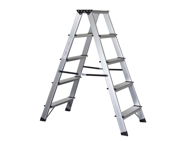Ausführung: Bockleiter, Material: Aluminium, Höhe geschlossen (mm): 1115, Höhe offen (mm): 1030, Stufenzahl (Stk.): 5, Stufengrösse (B x T mm): 300 x 80, Höhe Stufe 1 (mm): 150, Höhe Stufe 2 (mm): 370, Höhe Stufe 3 (mm): 595, Höhe Stufe 4 (mm): 810, Höhe Stufe 5 (mm): 1030, Plattformgrösse (B x T mm): 330 x 160, max. Belastungsgewicht (kg): 150, Norm: EN131, Aussenmasse geschlossen (H x B x T mm): 1115 x 450 x 165, Aussenmasse offen (H x B x T mm): 1030 x 450 x 880, Gewicht (kg): 4.14, Garantie (Monate): 24