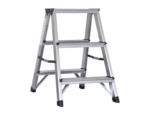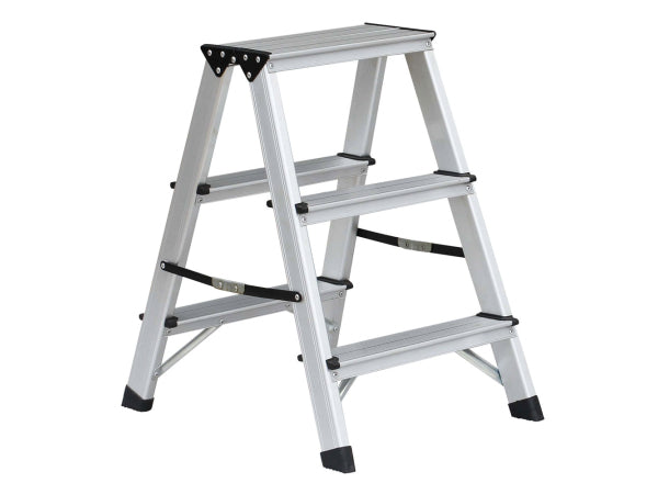 Ausführung: Bockleiter, Material: Aluminium, Höhe geschlossen (mm): 660, Höhe offen (mm): 600, Stufenzahl (Stk.): 3, Stufengrösse (B x T mm): 300 x 80, Höhe Stufe 1 (mm): 150, Höhe Stufe 2 (mm): 370, Höhe Stufe 3 (mm): 600, Plattformgrösse (B x T mm): 330 x 160, max. Belastungsgewicht (kg): 150, Norm: EN131, Aussenmasse geschlossen (H x B x T mm): 660 x 400 x 165, Aussenmasse offen (H x B x T mm): 600 x 400 x 560, Gewicht (kg): 2.52, Garantie (Monate): 24