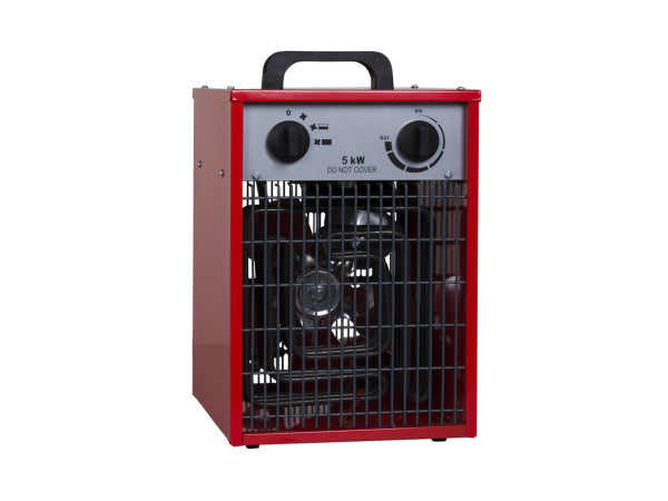 Produktinformation:, Integrierter stufenloser Thermostat 0 - 40°C, Sicherheitsisolierte Traggriffe, Für Raumgrössen bis 100 m³, Mit Thermostat, 5‘000 Watt Heizleistung, Robustes Gehäuse