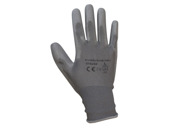 Marke: Kibernetik, Material: Polyester beschichtet, Farbe: Grau, Schutz: EN388 Level 3131, Prüfzeichen: CE, Grösse: L, Gewicht (netto): 50 g / Paar