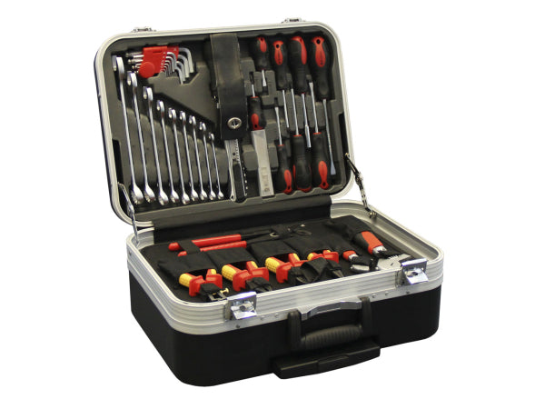 Ausführung: Ringmaulschlüssel: 9 Stk (8, 10, 11, 12, 13, 14, 17, 19, 22 mm), : Inbusschlüssel: 10 Stk. (1.5 - 10 mm), : Messer: 1 Stk. (Metallgehäuse) inkl. 10 Stk. Klingen (18mm), : Schraubendreher: 7 Stk., : Schraubendreher Bithalter: 1 Stk., : Phasenprüfer: 1 Stk. (220-250V), : LED Licht (Lampe): 1 Stk., : Kombinations Zange: 1 Stk. (7"(180mm)), : Diagonalschneidezange: 1 Stk. (6" (150mm)), : Spitzzange: 1 Stk. (8" (200mm)), : Stripper Zange: 1 Stk. (6" (160mm)), : Wasserpumpenzange: 1 Stk. (250 mm), : Rollgableschlüssel: 2 Stk. (6", 10" (150mm, 250mm)), : Metallsägeboden: 1 Stk. (300mm) inkl. 3 Stk. Klingen (300mm), : Meisel: 5 Stk., : Massband: 1 Stk. (3 M), : Stahlfeile: 1 Stk. (200 mm), : Hammer: 1 Stk. (300 g), : 1/2" Buchsen: 14 Stk. (10 - 24 mm), : 1/2" Gelenk: 1 Stk., : 1/2" Zündkerzenstecker: 2 Stk. (16, 21 mm), : 1/2" Verlängerungsstange: 2 Stk. (125, 250 mm), : 3-Weg Adapter: 1 Stk., : 1/2" 72T Rätschengriff: 1 Stk., : 1/4" Buchsen: 12 Stk. (4, 4.5, 5, 5.5, 6, 7, 8, 9, 10, 11, 12, 13mm), : 1/4" Gelenk: 1 Stk., : 1/4" Verlängerungsstange: 2 Stk. (50, 100 mm), : 1/4" Schiebe t-bar: 1 Stk., : 1/4" Koppel: 1 Stk., : Schraubendreher Bithalter: 1 Stk., : 1/4" kleine Rätsche: 1 Stk., : Aufsätze: 32 Stk. (25MM), : Material: aus ABS, Höhe: 470 mm, Breite: 370 mm, Tiefe: 210 mm, Gewicht: 14.5kg, Garantie: 24 Monate (2 Jahre)