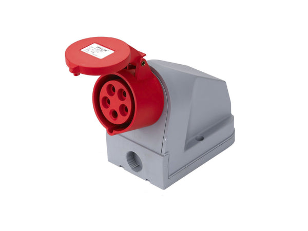 Produktinformation:, CEE16A Aufputz-Steckdose, Geeignet zur Wandmontage, Mit Klappdeckel, Spritzwassergeschützt, 5-polig