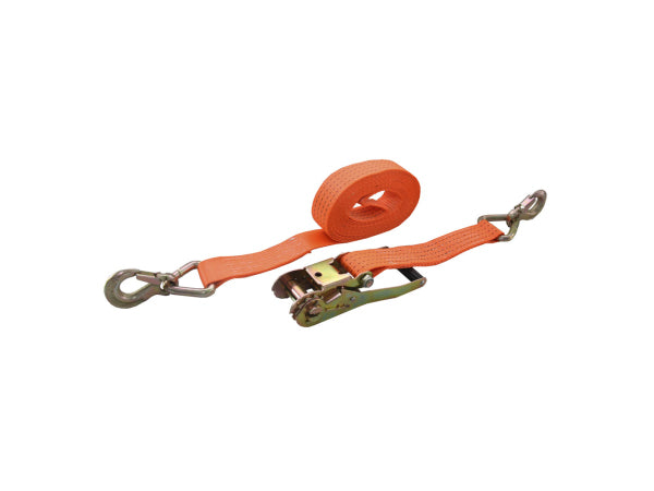 Marke: Holmberg, Modell: Zurrgurt 2 T / 5.5 m, Farbe: Orange, Material: 100 % Polyester, Gurtlänge (m): 7.5, Gurtlänge kurzer Teil (m): 0.5, Gurtbreite (mm): 50, Tragkraft (kg): 5'000, Hakentyp: Triangelhaken, Reissfestigkeit (daN): 5'000 / 2'500, Nettogewicht (kg): 3.1, Garantie (Monate): 24
