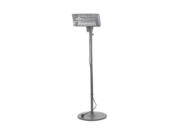 Produktinformation, Metallgehäuse, Heizelemente aus Quarz, 2000 Stunden Lebensdauer des Heizelements, Ersatz-Heizelement GL7734.1, 2 Leistungsstufen: 1000W, 2000W, Einfach zu montieren, Sicherheits-Umkippschalter, Heizfläche bis zu 14m2, Einstellbare Höhe 157-202cm, 3 Stufen vertikal verstellbarer Kopf, Stabiler, schwerer, runder Sockel 46cm, Gummifüsse, Einfacher Austausch des Heizelements, Produkt-Abmessungen: 202 x 50 x 19cm, Leistung: 1800-2000W, Stromanschluss: 220-240V ~50Hz, Schutzart IP24