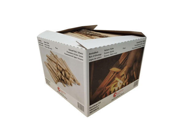 Das Bischofberger Schweizer Fichte Anzündholz besteht aus hochwertigem, fein gespaltenem Schweizer Nadelholz. Mit einer Restfeuchtigkeit von nur 10 % ist es stark heruntergetrocknet und ermöglicht ein einfaches und schnelles Anfeuern von Cheminées, Kaminen und Öfen. Ein Karton mit 10 kg reicht für etwa 15 bis 20 Feuer und sorgt für eine gleichmässige und effiziente Zündung. Ideal für alle, die Wert auf Qualität und Effizienz beim Heizen legen., , , Produktinformation, , Gewicht: 10 kg, Masse pro Karton: 38 cm x 38 cm x 28 cm, Scheitlänge: 25 cm, Scheitdicke: ca. 2 cm x 2 cm, Restfeuchte: 10 %, Material: Schweizer Nadelholz