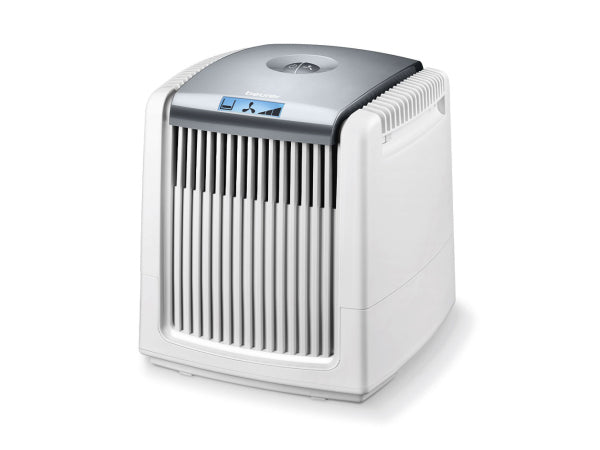 Der Beurer Luftwäscher LW 230 in elegantem weiss ist die perfekte Lösung für saubere und optimal befeuchtete Luft in deinem Zuhause. Dieses 2-in-1 Gerät kombiniert Luftbefeuchtung und Luftreinigung, um ein angenehmes Raumklima zu schaffen. Ideal für Räume bis zu 40 m², sorgt der LW 230 dafür, dass du jederzeit frische und gesunde Luft einatmest., Dank der innovativen Silberionen Pads bleibt dein Luftwäscher stets hygienisch sauber, ohne dass du dir Gedanken um Keime oder Bakterien machen musst. Einfach und effektiv – so sollte Luftpflege sein. Er arbeitet leise und effizient, sodass du ihn problemlos im Schlafzimmer, Wohnzimmer oder Büro einsetzen kannst., Verabschiede dich von trockener Luft und schädlichen Partikeln und geniesse ein neues Level an Komfort und Wohlbefinden. Stell ihn auf, schalte ihn ein und atme durch – für ein rundum gesundes Raumklima!, , Produktinformation, , , Selbstregulierende Befeuchtung der Raumluft durch Kaltverdunstung , , Luftreinigung ohne Filtermatten: entfernt Hausstaub, Pollen, , Tierhaare und Gerüche, , Inkl. Silvertex® fresh air: Gegen Bakterien, Pilze und Algen im Wasser - , dank Silberionen Pad Art.-Nr.: 164.160, , Keine Zugabe von chemischen Flüssigkeiten nötig, 3 Leistungsstufen des Ventilators, , Mit Wasserfüllstandsanzeige und Sicherheitsabschaltung , bei leerer Wanne , , Blau beleuchtetes LCD-Display, , Pflegeleicht und unkompliziert - einfache Zerlegung und Reinigung , in der Spülmaschine, , Befeuchtungsleistung selbstregulierend (abhängig von den , Raumbedingungen) geeignet für Räume bis ca. 40 m², , Reinigungsleistung bis 20 m² (abhängig von den Raumbedingungen), , Fläche der Befeuchtungsscheiben: ca. 2.5 m², , Flüsterleise, Betrieb im Schlafzimmer möglich, Einsatz mit Zeitschaltuhr möglich, , Extrem niedriger Stromverbrauch, ca. 2-4-7 Watt