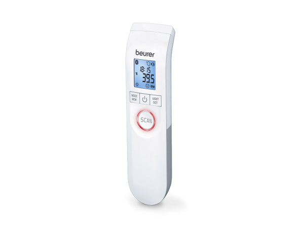 Mit dem Beurer kontaktloses Fieberthermometer FT 95 behältst du deine Temperatur stets im Blick. Dank Bluetooth®-Konnektivität kannst du deine Messwerte einfach in die "beurer HealthManager Pro" und die "beurer BabyCare" App übertragen. So hast du all deine Ergebnisse übersichtlich in einer Anwendung gesammelt., , Produktinformation, - Vielseitige Messungen: Körper-, Umgebungs- und Oberflächentemperatur, - Hygienisch und sicher: Kontaktloses Messen, - Bluetooth®-Konnektivität: Übertragung der Messergebnisse zur grafischen Auswertung, - Schnelle Messung: Ergebnisse in Sekunden, - Infrarot-Technologie: Präzise Temperaturmessung, - LED-Fieberindikator: Anzeige in Grün, Gelb und Rot, - Anzeigeoptionen: Wahl zwischen °C und °F, - Sound Control: Töne ein- oder ausschalten, - Messdistanz: 2 - 3 cm, - Hohe Messgenauigkeit:, - Stirn: ±0,2°C bei 34°C-42,2°C (±0.4°F bei 93.2°F-108°F), - Objekt: ±4% oder ±2°C (±4°F) bei 0 - 80°C (-32°F - 176°F), - Speicher: 60 Speicherplätze für Körpertemperatur, - Energiesparend: Automatische Abschaltung, - Signalton: Wählbarer Signalton bei Messende, - Gut ablesbares Display: Blau beleuchtetes XL-Display, - Inklusive Apps: Kostenlose "beurer HealthManager Pro" App für Messwerte und Körperdaten sowie kostenloser Download der „beurer BabyCare“ App