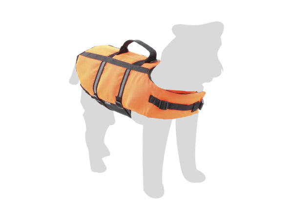 Lass deinen Hund sicher schwimmen mit der Flamingo Schwimmweste! Einfach anzuziehen und anzupassen. Orange Farbe und reflektierende Streifen für zusätzliche Sichtbarkeit., , Produktinformation, Material: Polyester mit Füllung: PP Plastik, Handwäsche, Klettverschluss mit Klickschnalle an Bauch- und Halsbereich, Wasserabweisend, Reflektierend, Mit einem Ring zum Anleinen und einer Rutenschlaufe, , , Masse (A: Rückenlänge in cm / B: Halsumfang in cm / C: Bauchumfang in cm), , XS : A : 25 / B: 30 – 38 / C: 34 – 44, S : A : 30 / B: 36 – 46 / C: 44 – 54, M : A : 35 / B: 42 – 50 / C: 50 – 56, L : A : 40 / B: 46 – 49.5 / C: 80 – 84, XL : A : 45 / B: 44 – 55 / C: 84 – 86