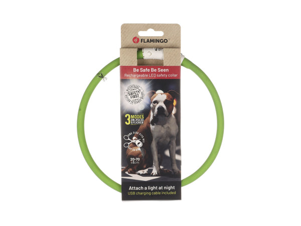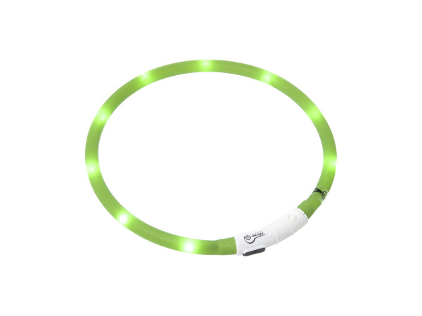 Das Flamingo Leuchthalsband Nera Visio grün ist ein praktisches, universelles Lichtband, das du einfach anpassen kannst. Sichtbar bis zu 500 Meter und über USB aufladbar, ohne Batterien! Inklusive USB-Kabel und wasserdicht mit 3 Modi. Perfekt für jede Aktivität!, , Produktinformation, Material: Kunststoff, Inklusive 1 wiederaufladbare LIR1015 Batterie und Micro-USB-Kabel, Klickschnalle, IP44 (Schutz gegen spitze Gegenstände und spritzwassergeschützt), LED-Licht bis zu 500 m sichtbar mit 3 Einstellungen, Das Halsband kann auf jede beliebige Länge zugeschnitten werden