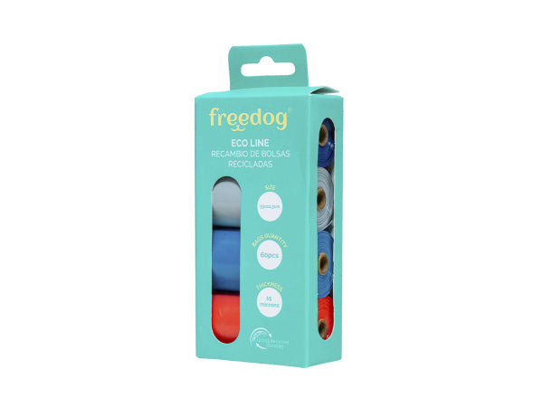 Entsorge Hundekot hygienisch mit den farbenfrohen Freedog Kotbeuteln. Sie sind ideal für unterwegs oder den täglichen Spaziergang im Park.
