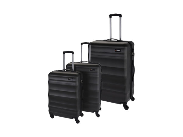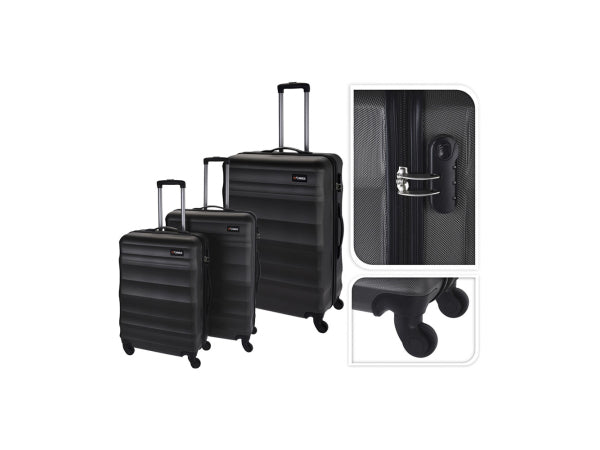 Das FS-STAR Kofferset 3-teilig in anthrazit ist der ideale Begleiter für deine Reisen. Mit drei verschiedenen Grössen (Cabin, Medium, Large) hast Du immer das passende Gepäckstück dabei. Die Koffer bestehen aus robustem ABS-Material und bieten viel Stauraum für Dein Reisegepäck. Die leichtgängigen Rollen ermöglichen ein einfaches Manövrieren, egal wo du gerade bist. Der teleskopische Griff lässt sich auf Deine Körpergrösse anpassen, was den Komfort erhöht. Mit dem modernen anthrazitfarbenen Design bist Du immer stilvoll unterwegs. Die praktischen TSA-Schlösser sorgen dafür, dass Dein Gepäck sicher ist. Das FS-STAR Kofferset vereint Komfort, Funktionalität und elegantes Design in einem., , , Produktinformationen, , 3-teiliges Set, Robustes Material, Leichtgängige Rollen, Teleskopgriff, Sicherheits-TSA-Schlösser, , Koffermasse, , Koffer klein (H x B x T in mm): 550 x 360 x 220, Koffer mittel (H x B x T in mm): 660 x 450 x 250, Koffer gross (H x B x T in mm): 760 x 520 x 290