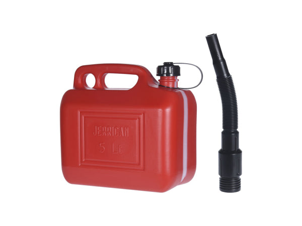 Produktinformation, , Material: Polyethylen, Grösse: 265 x 145 x 260 mm, Fassungsvermögen: 5 Liter, Farbe: Rot, Öffnungsdurchmesser: 32 mm, Verschluss: Schraubverschluss mit angebrachtem PP-Band, Trichter: Separater Sicherheitstrichter, Zertifizierung: UN-zertifiziert, Verwendungszweck: Nur für Kraftstoffe, Verpackung: Master Polybag, mit Barcode-Aufkleber (SB22), Zusätzliche Kennzeichnung: Adressaufkleber AM,63
