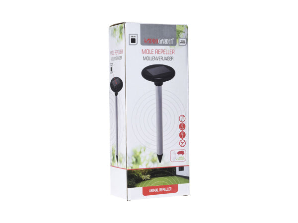 Produktinformation, , Intelligentes Abwehrmittel gegen unerwünschte Nager, Funktioniert mit Solarenergie, Wird direkt in den Boden oder in den Rasen gesteckt, Farbe: Schwarz und Grau, Konstruktion aus ABS und Aluminium, Masse: 15,5 cm Ø x 44,5 cm Höhe, Ausgestattet mit einer wiederaufladbaren AA-Batterie (200 mAh), Funktioniert mit Solarenergie