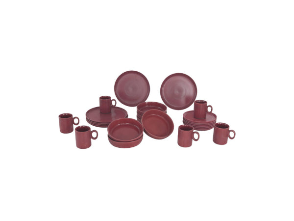 Dieses exklusive Kombi-Service aus hochwertigem, dickwandigem Porzellan mit seidenmatter Lackierung – ein echter Blickfang für deine Tafelrunde! Dieses Set besteht aus insgesamt 24 Teilen und umfasst alles, was du für ein perfekt gedecktes Tischarrangement benötigst., , , Produktinformation, , Komplettservice, Trendiges Bordeauxrot, Bis 6 Personen, Dickwandiges Porzellan, Seidenmatte Lackierung, Schwere Qualität mit rauer Oberfläche, Spülmaschinen- und Mikrowellengeeignet, , , , Lieferumfang:, , Kaffeebecher je: Ø 7,7 x H 10 cm, Kuchenteller je: Ø 20,4 x H 1,7 cm, Speiseteller je: Ø 27 x H 2 cm, Bowl-Schalen je: Ø 19 x H 4,1 cm