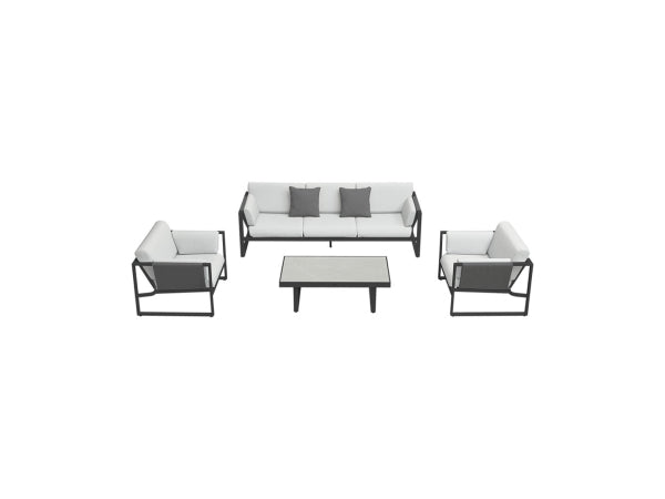 Die Gartenlounge Lipari ist die perfekte Kombination aus Minimalismus und zeitgenössischem Stil für jeden Garten. Das geradlinige Design und die neutrale Farbpalette verleihen jedem Aussenbereich eine moderne Note und schaffen eine harmonische Atmosphäre., , Hergestellt aus wasserfesten und langlebigen Materialien, inklusive pulverbeschichtetem Aluminiumrahmen, trotzt dieses Loungeset den Elementen und garantiert eine langanhaltende Nutzung. Die einfache Montage und geringer Wartungsaufwand machen es zur idealen Wahl., , Das Set beinhaltet ein 3-Sitzer Sofa, zwei Gartensessel und einen edlen Couchtisch mit marmoriertem Glaskeramik. Die bequemen Sitz- und Rückenpolster sind mit hochwertigem, schnelltrocknendem und wasserabweisendem Schaumstoff gepolstert. , , , Produktinformation, Pulverbeschichteter rostfreier Aluminiumrahmen, Pflegeleichte und strapazierfähige Polsterbezüge, Kein Verblassen der Textilien, Edler und robuster Couchtisch , Inkl. Zierkissen, , Lieferumfang, 1x 3er Sitzsofa, 2x Gartensessel, 1x Couchtisch, Inkl. Polster, Inkl. Zierkissen