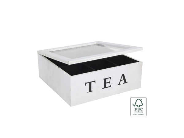FS-STAR Teedose aus Holz mit 9 Kammer weiss