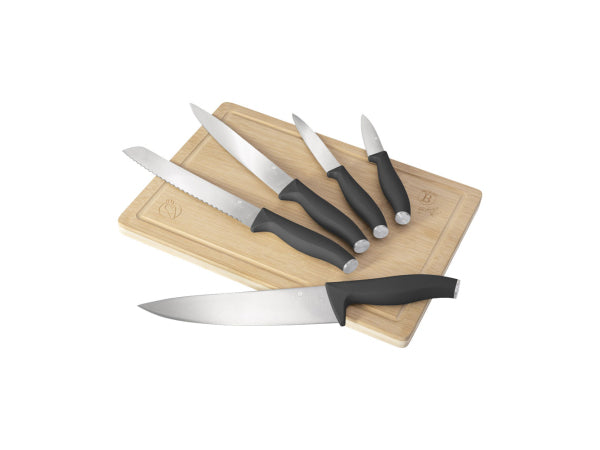 Berlinger Haus 6-teiliges Messerset mit Bambus Schneidebrett matt Anthracite Collection
