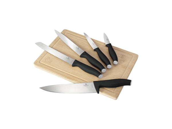 Berlinger Haus 6-teiliges Messerset mit Bambus Schneidebrett Matte Black Collection
