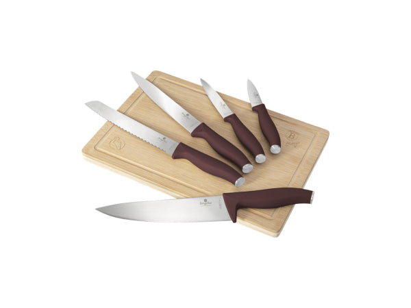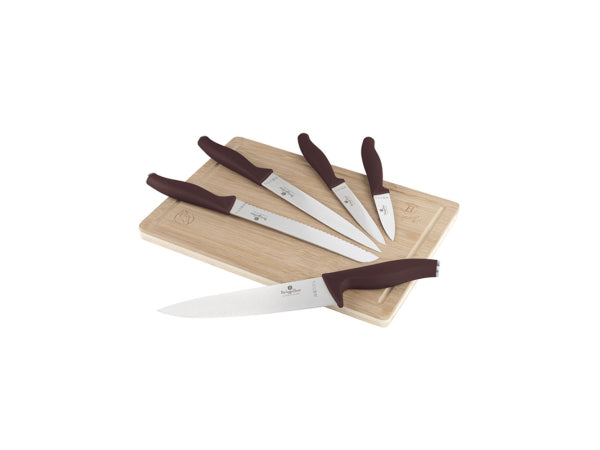 Berlinger Haus 6-teiliges Messerset mit Bambus Schneidebrett matt bordeaux Leonardo Collection