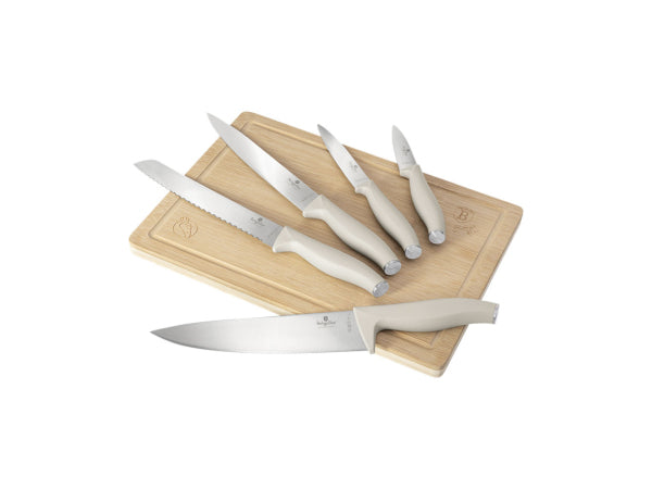 Berlinger Haus 6-teiliges Messerset mit Bambus Schneidebrett matt cream Sahara Collection