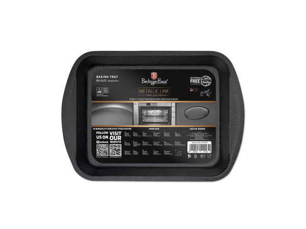 Die Backform von Berlinger Haus eignet sich gut zum Backen von Kuchen, Pasteten, Backformen oder zum Zubereiten von Pommes aus dem Ofen., Dank der robusten Konstruktion widersteht sie zuverlässig Verwerfungen und erwärmt sich gut., , Produktinformation:, Dreifache schwarze Antihaft-Granitbeschichtung, Backen bei Temperaturen bis 220 ° C möglich, Spülmaschinenfest, Frei von PFOA, Cadmium und Bleiverbindungen, ECO-freundlich, Größe: 40*28,5*7 cm, Innenmaß: 33,3*26,1 cm, Farbe: Roségold, Antihaftbeschichtung – leicht zu reinigen