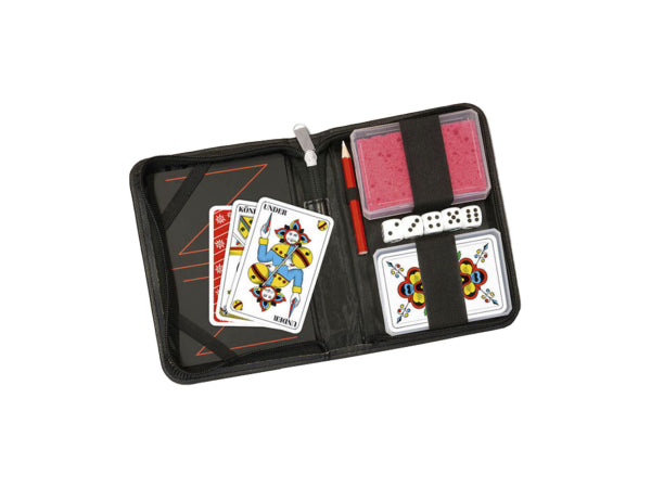 Entdecke das elegante Jassetui von carta.media – ein exklusives Set für Jass- und Yatzy-Liebhaber und Liebhaberinnen. Hergestellt aus hochwertigem schwarzem Kunstleder, enthält es ein Jasskarten-Set mit deutschschweizer Motiven, eine Jasstafel mit Jasser Z/Z und Yatzy-Aufdruck, einen Schwamm, einen Kreidestift sowie fünf Yatzy-Spielwürfel. Praktisch verstaut im transparenten Bösli, ist dieses Set die perfekte Kombination aus Stil und Spielspass., , , Produktinformation, , Perfekte Kombination, Hochwertiges Design, Praktische Aufbewahrung, Deutschschweizer Motive, Vielseitiges Spielvergnügen
