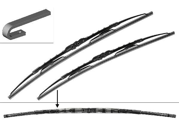 Das robuste Vollmetall-Bügelsystem mit zweifachem Korrosionsschutz ist extrem widerstandsfähig bei jeder Witterung und der Twin Spoiler für beste Wischleistung auch bei hoher Geschwindigkeit.