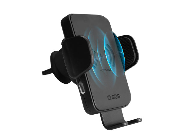 Clamp hat eine Leistung von 15 Watt: Die Energie wird einfach durch Einsetzen des kompatiblen Smartphones beim kabellosen Laden zwischen den Armen geliefert.